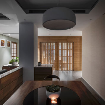 窗外的綠意,遠離城市的喧囂。實木紋,灰石紋,青灰綠的牆面多了室內的綠意。一點點日式一點點綠意,多了份禪意,回家即放鬆。